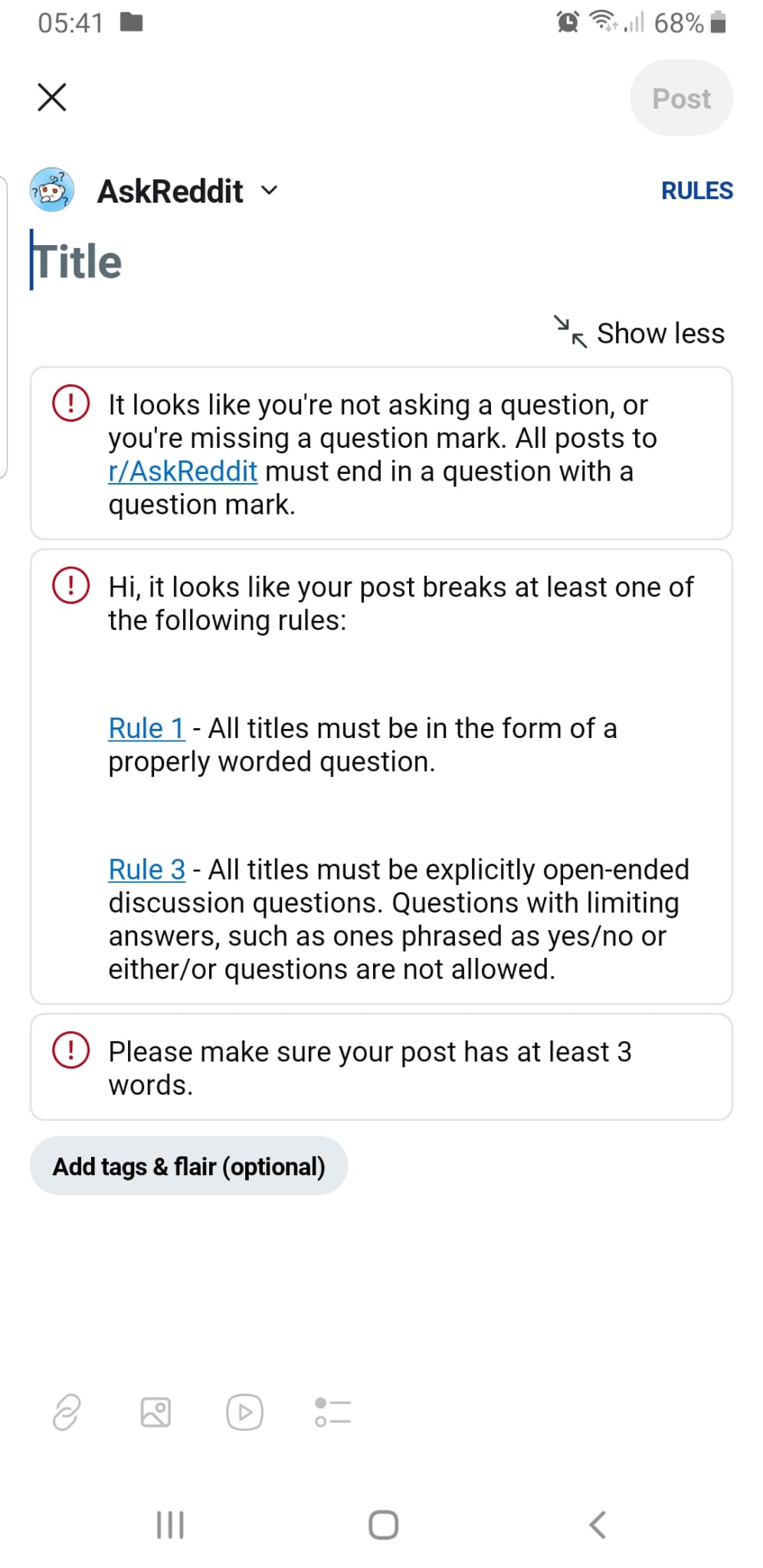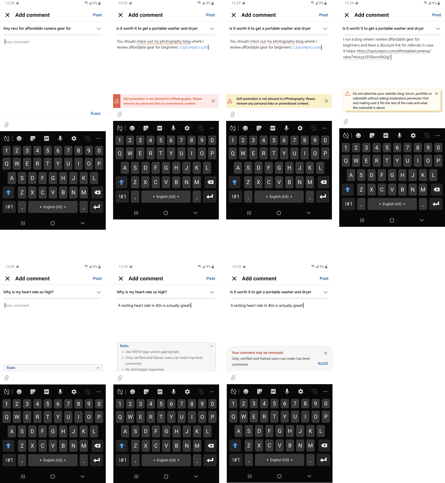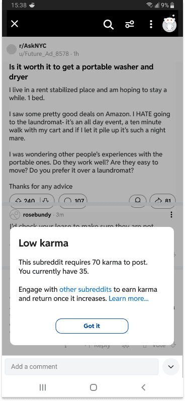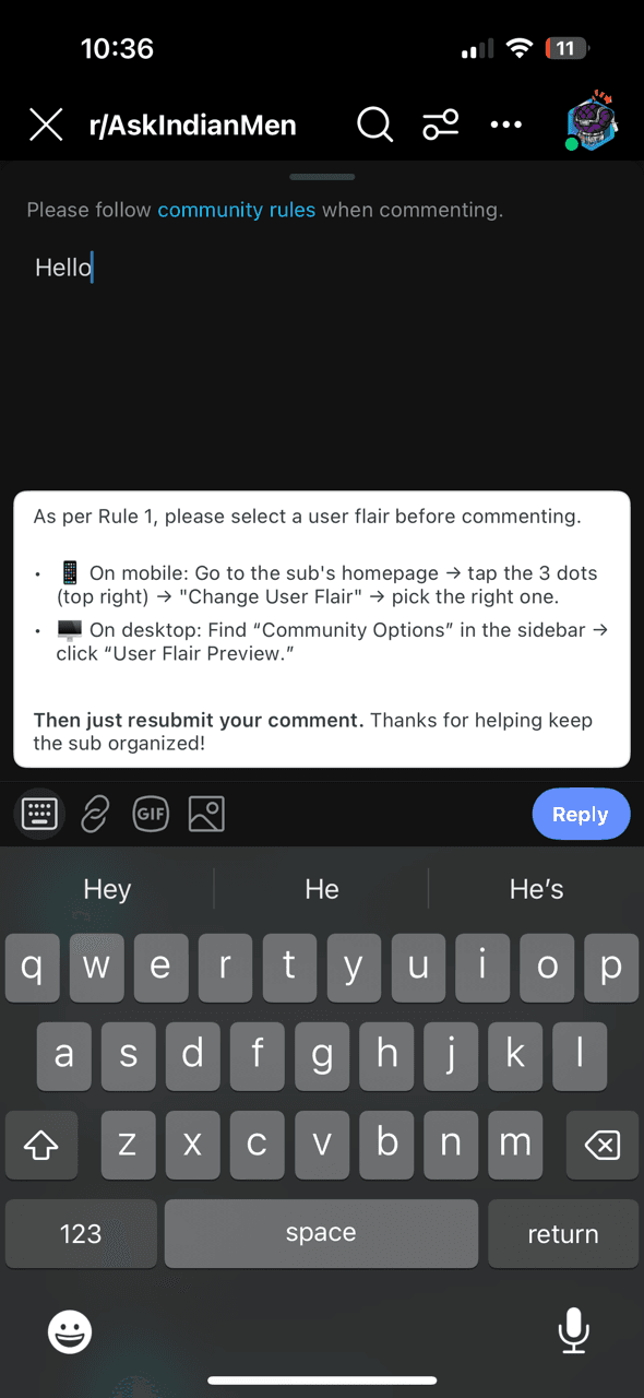 During testing, one participant responded positively to the Rule Check feature but mentioned that they already have this feature. That feedback made me realize that Reddit already offers a real time rule check on certain devices, specifically iOS.