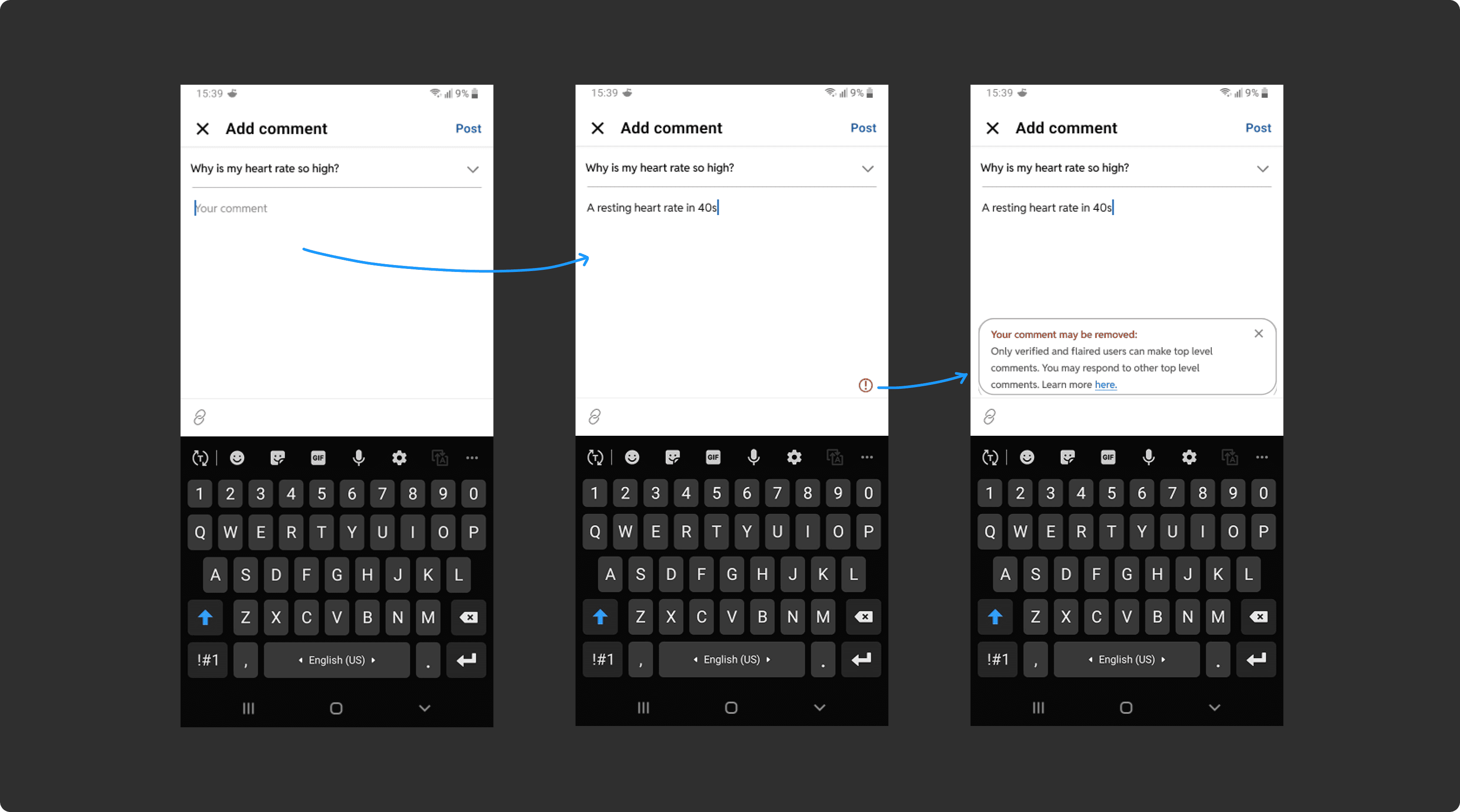 This discovery revealed an important inconsistency across platforms and reinforced the opportunity to extend this functionality to all devices, ensuring a more consistent and supportive commenting experience for every user.